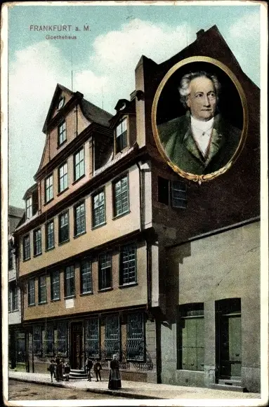 Ak Frankfurt am Main, Goethehaus, Außenansicht, Portrait Goethe