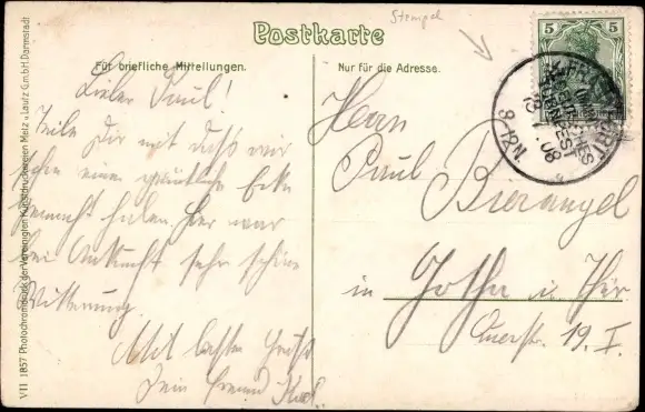Zustand, siehe Scan, gelaufen, 1908 - ca 14 cm X 9 cm
