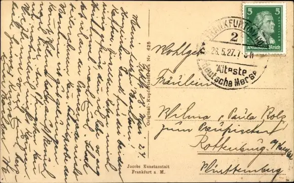 Zustand, siehe Scan, gelaufen, 1927 - ca 1473 cm X 9 cm