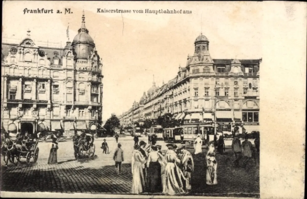 Ak Frankfurt am Main, Kaiserstraße, Hauptbahnhof, Straßenbahn, Pferdekutschen