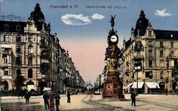 Ak Frankfurt am Main, Kaiserstraße, Uhrturm, Straßenbahn