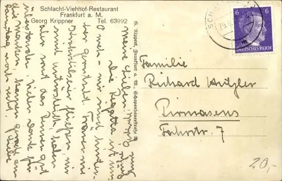 Ak Frankfurt am Main, Schlacht-Viehhof-Restaurant