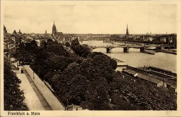 Ak Frankfurt am Main, Teilansicht, Brücke, Kirchtürme