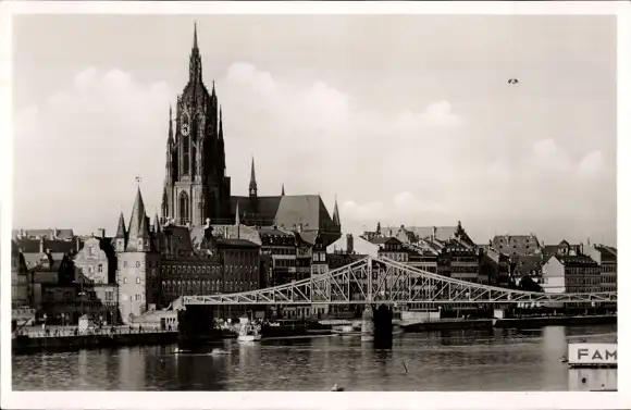 Ak Frankfurt am Main, Teilansicht, Kirche, Brücke
