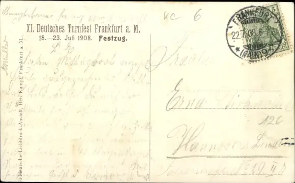 Ak Frankfurt am Main, XI. Deutsches Turnfest 1908, Festzug