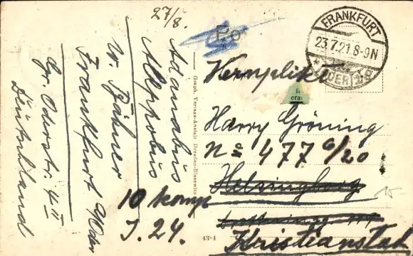 Zustand, siehe Scan, gelaufen, 1921 - ca 9 cm X 14 cm