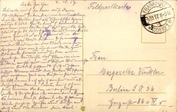 Zustand, siehe Scan, gelaufen, 1917 - ca 14 cm X 9 cm