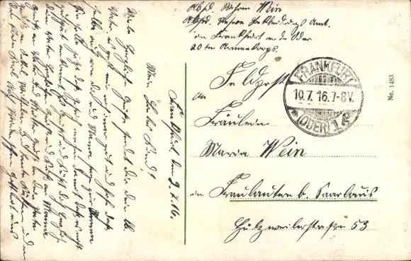 Zustand, siehe Scan, gelaufen, 1916 - ca 14 cm X 9 cm