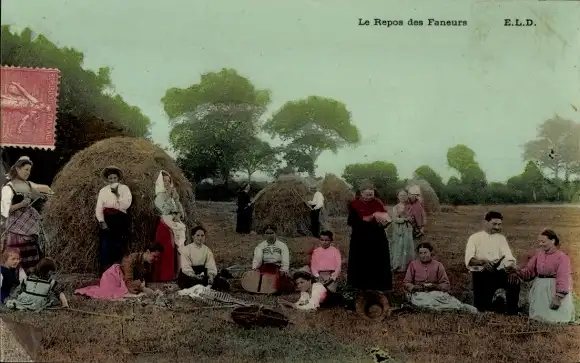 Ak Frankreich, Bauern machen eine Pause, Landwirtschaft, Heu, Ernte