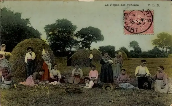 Ak Frankreich, Bauern machen eine Pause, Landwirtschaft, Heu, Ernte