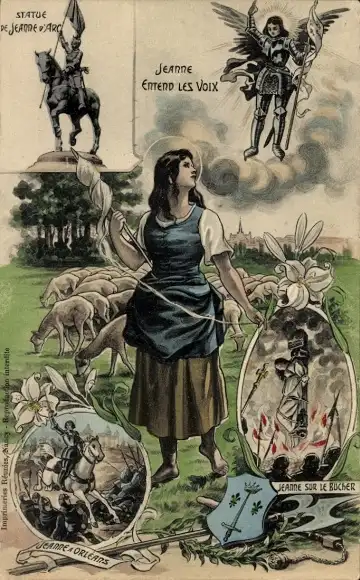 Ak Frankreich, Frau mit Handspindel, Schafe, Jeanne d'Arc