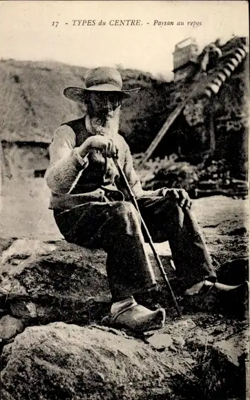 Ak Frankreich, Mann in Tracht, Gehstock, Bauernhof