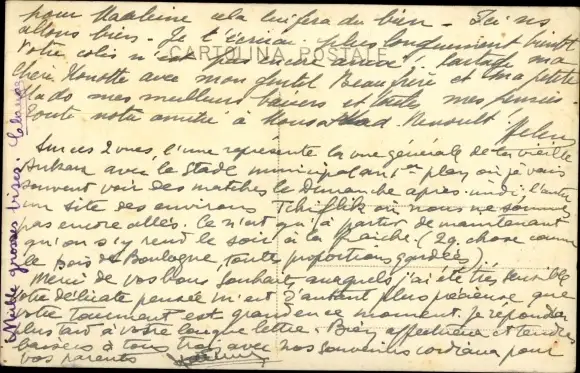ungelaufen, Rückseite beschrieben, fleckig, sonst guter Zustand
