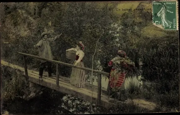 Ak Frankreich, Un baiser avant tout, französische Trachten