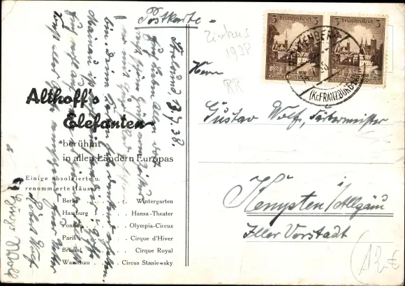 Ak Franz Althoff, berühmte akrobatische und tanzende Elefanten Revue, Zirkus