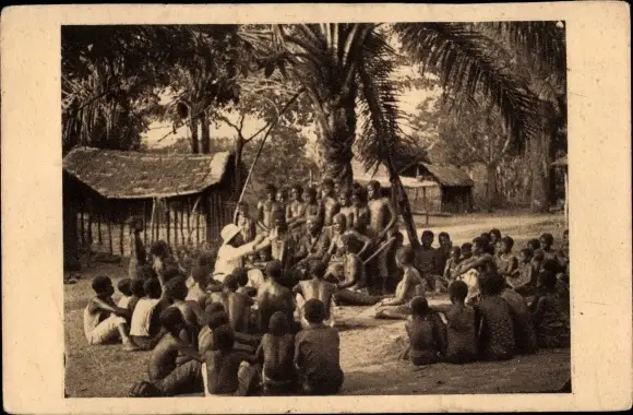 Ak Französisch Kongo, Missionar spricht zu Dorfbewohnern