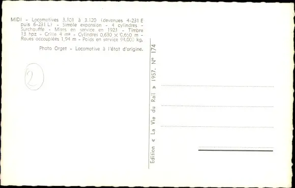 Ak Französische Eisenbahn, Chemin de Fer, Locomotive, 3101 à 3120