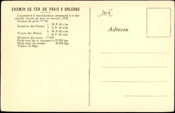 Ak Französische Eisenbahn, Chemin de Fer de Paris a Orleans, Dampflok
