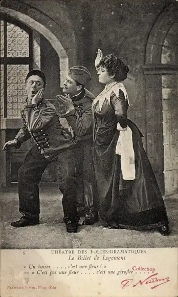 Ak Französische Soldaten in Uniform, Husar, Theaterszene
