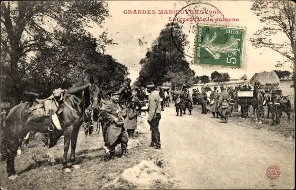 Ak Französische Soldaten in Uniformen, Manöver, Pferd, I. WK