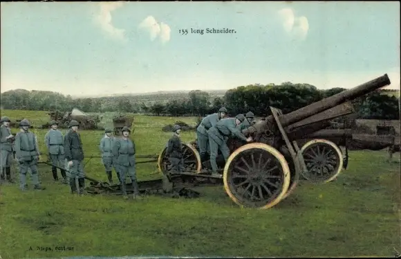 Ak Französische Soldaten mit Kanone