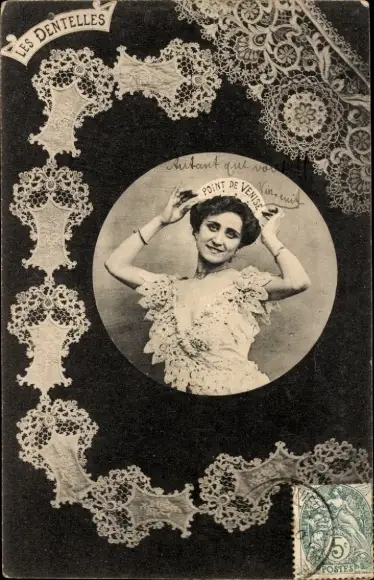Ak Französische Tracht, Klöppelwerk, Frau-Portrait