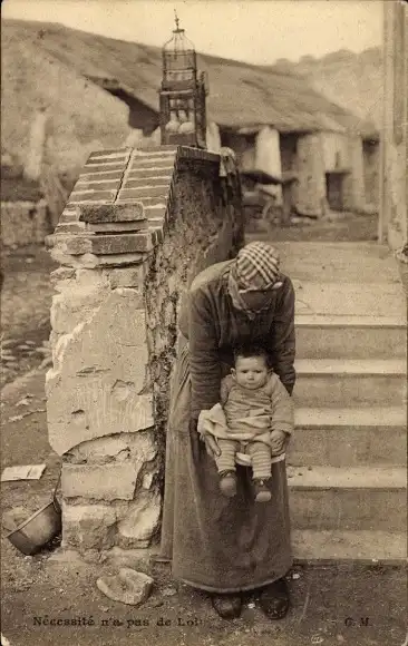 Ak Französische Volkstracht, Frau mit Enkel, Porträt