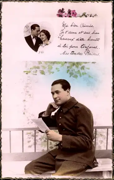 Ak Französischer Soldat in Uniform, Soldatenliebe