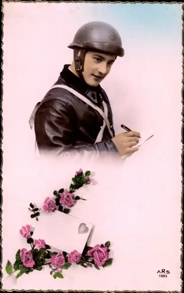 Ak Französischer Soldat in Uniform schreibt einen Liebesbrief, Soldatenliebe
