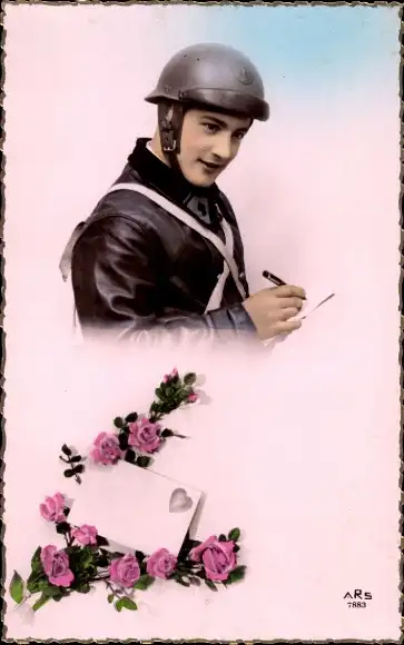 Ak Französischer Soldat in Uniform schreibt einen Liebesbrief, Soldatenliebe