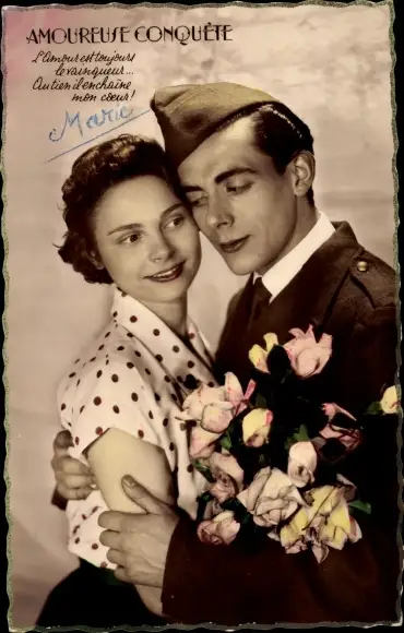 Ak Französischer Soldat mit Frau, Soldatenliebe