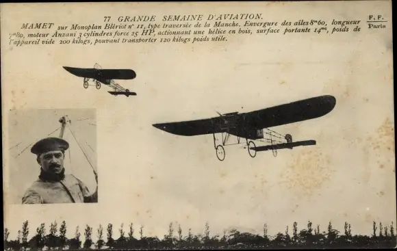 Ak Französisches Flugzeug, Grande Semaine d'Aviation, Mamet sur Monoplan Bleriot