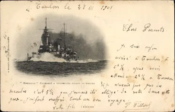 Ak Französisches Kriegsschiff, Brennus, Cuirasse a Tourelles
