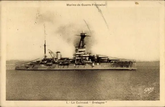 Ak Französisches Kriegsschiff, Bretagne, Cuirassé