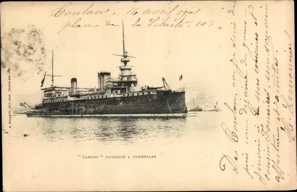 Ak Französisches Kriegsschiff, Carnot, Cuirassé à Tourelles
