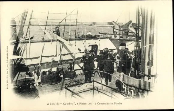 Ak Französisches Kriegsschiff, Courbet, Cuirasse, Seeleute, Pierre Loti, Commandant Pottier