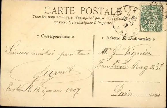 Zustand, siehe Scan, gelaufen, 1907 - ca 14 cm X 9 cm