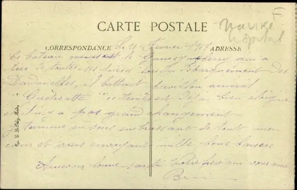 Ak Französisches Kriegsschiff Jauréguiberry, Navire hopital, I. WK