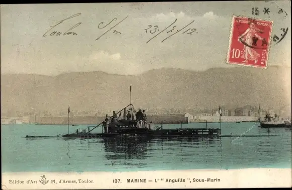 Ak Französisches Kriegsschiff L'Anguille, U-Boot, Marine Nationale