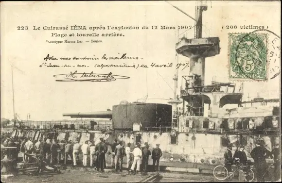 Ak Französisches Kriegsschiff, Le Cuirassé Iena apres l'explosion du 12 Mars 1907