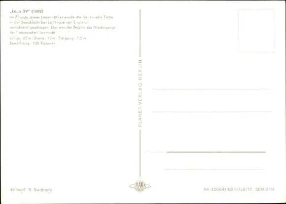 Ak Französisches Kriegsschiff Louis XV von 1692, Linienschiff, Segelschiff