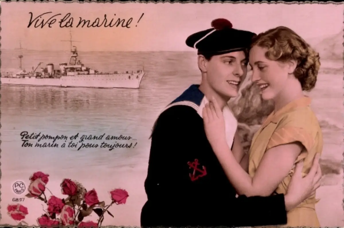 Ak Französisches Kriegsschiff, Matrose mit Frau