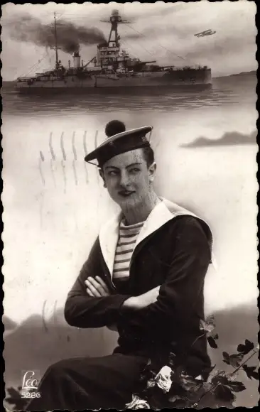 Ak Französisches Kriegsschiff, Seemann in Matrosenanzug, Uniform