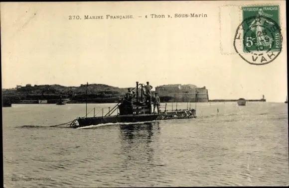 Ak Französisches Kriegsschiff, U-Boot Thon, Sous-Marin