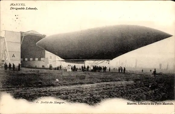 Ak Französisches Luftschiff Lebaudy, Flugplatz Mantes