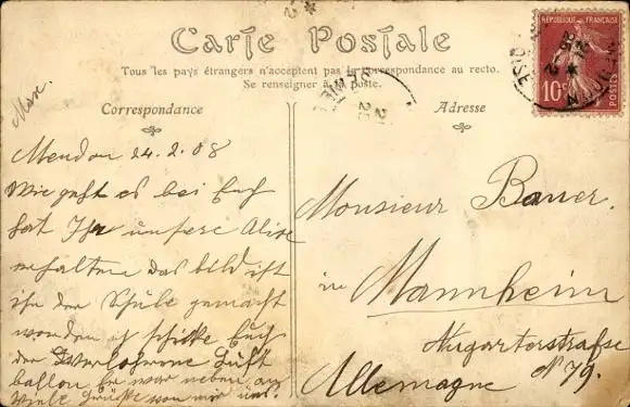 Zustand, siehe Scan, gelaufen, 1908 - ca 5 cm X 3 cm