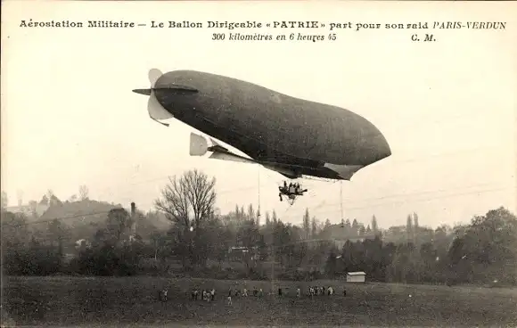 Ak Französisches Militär-Luftschiff Patrie, Raid Paris Verdun