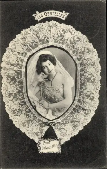 Ak Frau-Porträt, Schleier, Klöppelwerk