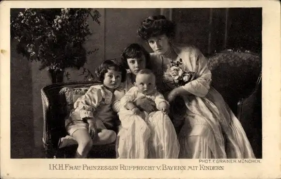 Ak Frau Prinzessin Rupprecht von Bayern mit Kindern