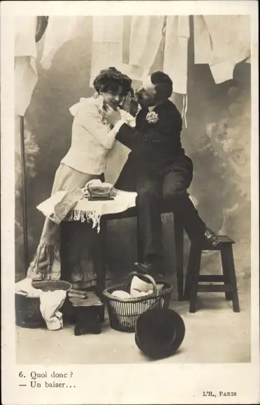 Ak Frau beim Bügeln, Bügeleisen, junger Mann